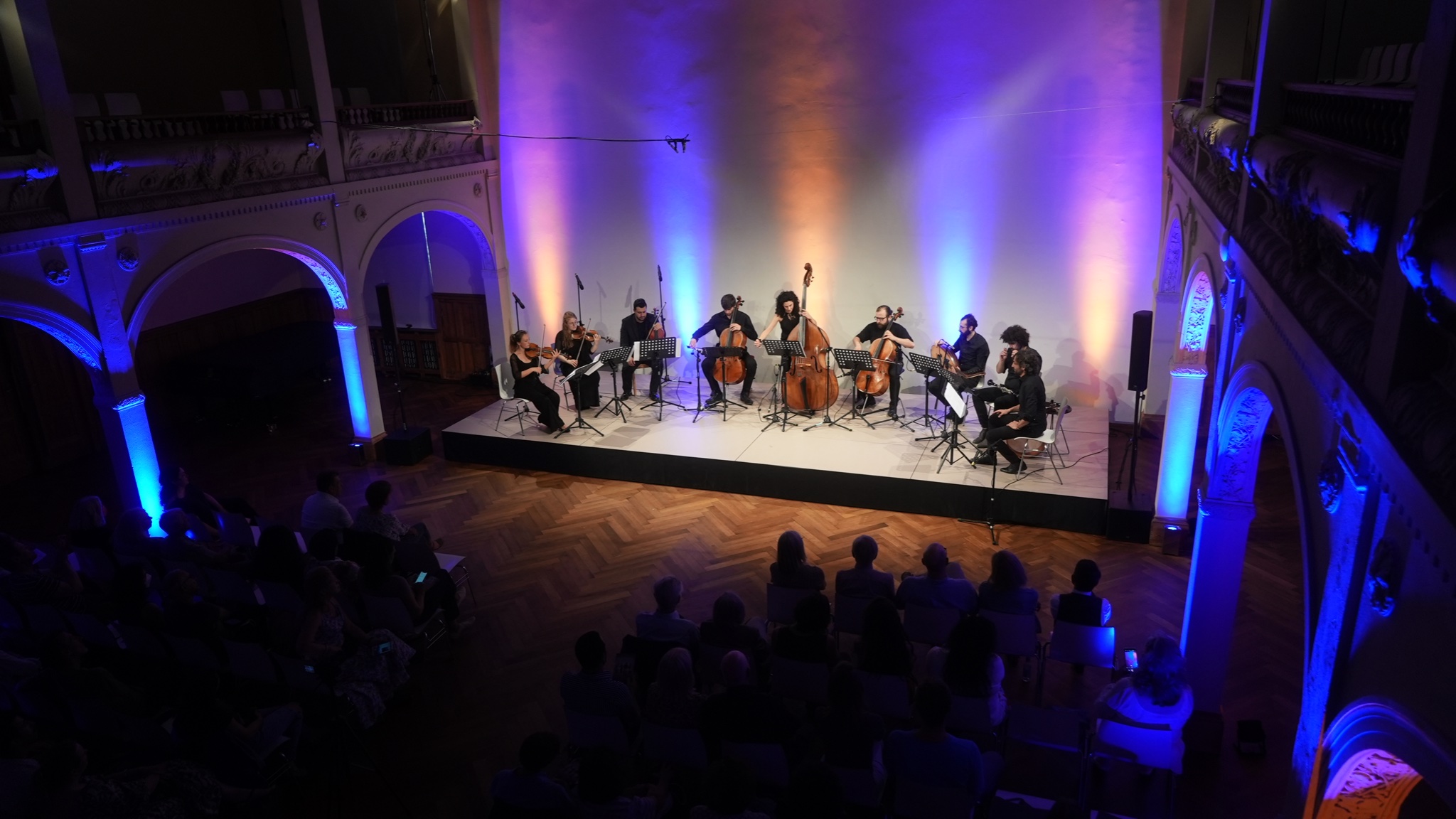 The Ramal Ensemble, together with guests from the IMPULSIA Ensemble, explores the connection between Western classical and Arabic music in the Creative Music Lab concert series. The performance contrasts Tchaikovsky’s Serenade for Strings Op. 48 with works from iconic Arab composers. While Tchaikovsky’s piece reflects European classical traditions and Russian folk influences, the selected Arabic compositions blend tradition with Western musical elements. Featured works include pieces by Riad Al-Sunbati, Mohamed Abdel Wahab, Yorgo Bacanos, Mohamed El Qasabgi, and Baligh Hamdi. Their music, ranging from virtuosic dance-inspired Longas to orchestral preludes, highlights the fusion of East and West. The program concludes with Layali El Mansoura by Attia Sharara, celebrating Egyptian heritage.